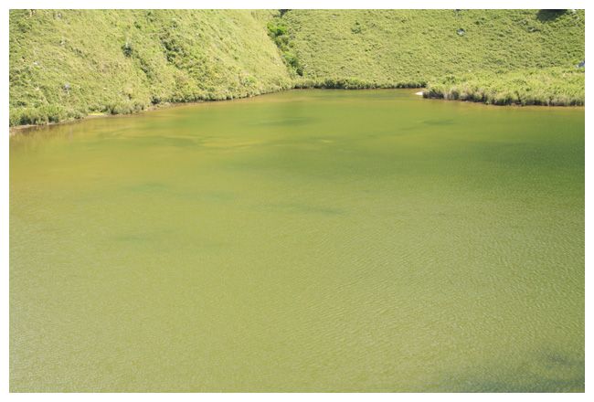 萬里池的池底會透出淡淡的綠色,又有如翡翠的顏色,應該是藻類繁殖的傑作。